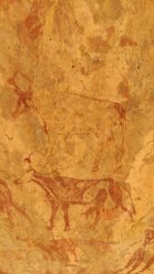 En chemin, nous faisons une halte dans un abri rocheux dissimulé, où nous découvrons un remarquable ensemble de peintures rupestres anciennes, témoins fascinants des civilisations passées.