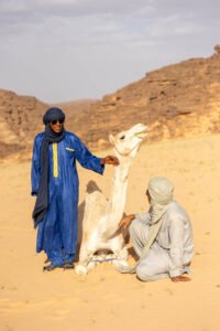 Les accompagnateurs locaux sont des hommes de terrain, souvent issus de familles nomades. Bien que leur maîtrise du français soit limitée, ils parlent couramment le dialecte algérien, l’arabe et le Tamachak (leur langue maternelle). Ils possèdent une connaissance approfondie de leur région et seront ravis de partager leur culture et leurs traditions avec respect et ouverture, bien qu'ils ne soient ni ethnologues ou géologues.